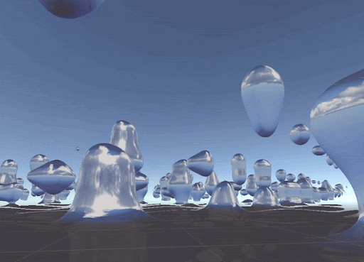 A cube and Sphere, representing each of the players, separate and merge dynamically in real time based on the sensor data from both and depending on how synchronized their breathing is.